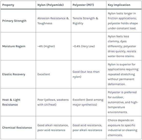 The performance differences between nylon and polyester originate at the molecular level. Understanding these foundational characteristics is essential for predicting how each material will behave in the final application.